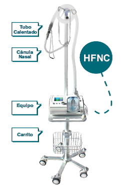 La oxigenoterapia de humidificación de flujo alto nasal (HFNC) se refiere a una